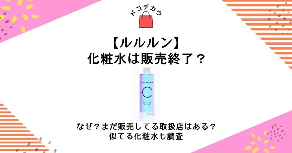ご当地フェイスマスク等でおなじみのルルルンの化粧水はなぜ販売終了してしまったのでしょうか? 2022年9月に終売が発表されたルルルンの化粧水。 大容量でコスパ良く人気商品だっただけにSNSでは、化粧水迷子になった…とショックを受けている方も多く見受... -