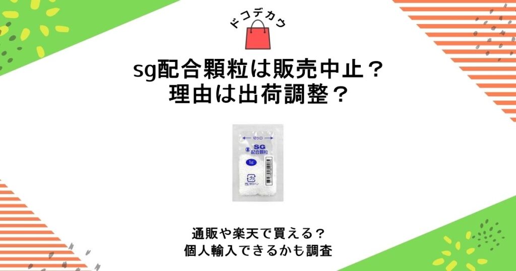 sg配合顆粒が、今は販売中止になっているのではないかという噂があります。 そこで今回は、このsg配合顆粒が本当に販売中止になっているのか?その理由と、ネット通販や個人輸入でも買えるのかを調べてみました。 sg配合顆粒は現在も販売中!販売中止が広ま... -